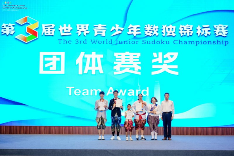 8月23日19时,闭幕式在精彩的赛事回顾集锦中拉开帷幕。本届赛事设共置最佳组织奖、观摩奖、参赛国特别奖、团体赛特别奖等多个奖项。中国选手在多个组别中稳定发挥,斩获佳绩:沈珩获等获U8组国际奖个人赛金奖、李辰朗等获U10组国际奖个人赛金奖,王梓睿等获U12组国际奖个人赛金奖、潘昱昊等获U15组国际奖个人赛金奖、胡宇轩等获U21组冠国际奖个人赛金奖,延续了中国在数独领域的传统优势;中国代表队获得团体赛金奖,日本代表队获得团体赛银奖,泰国代表队获得团体赛铜奖。泰国克鲁帕太队(KRU PA TAI'S TEAM)、福州市台江区数独协会、深圳市睿德数独教育科技有限公司获得最佳组织奖。
